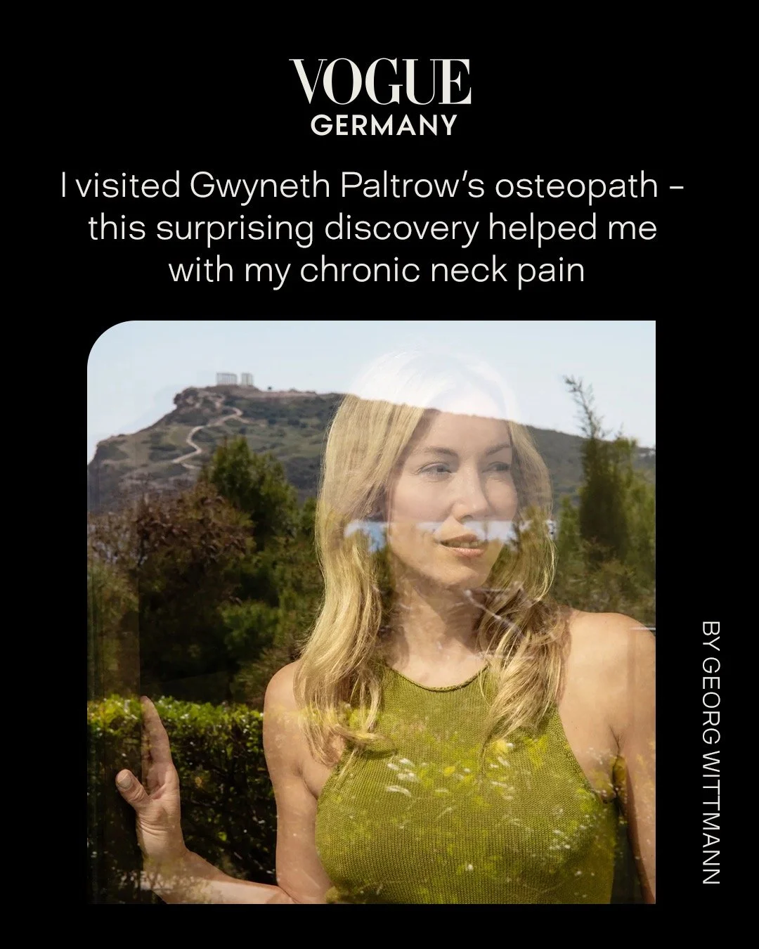 Cover of Vogue Germany magazine featuring a woman and a double exposure of nature with a mountain and trees.